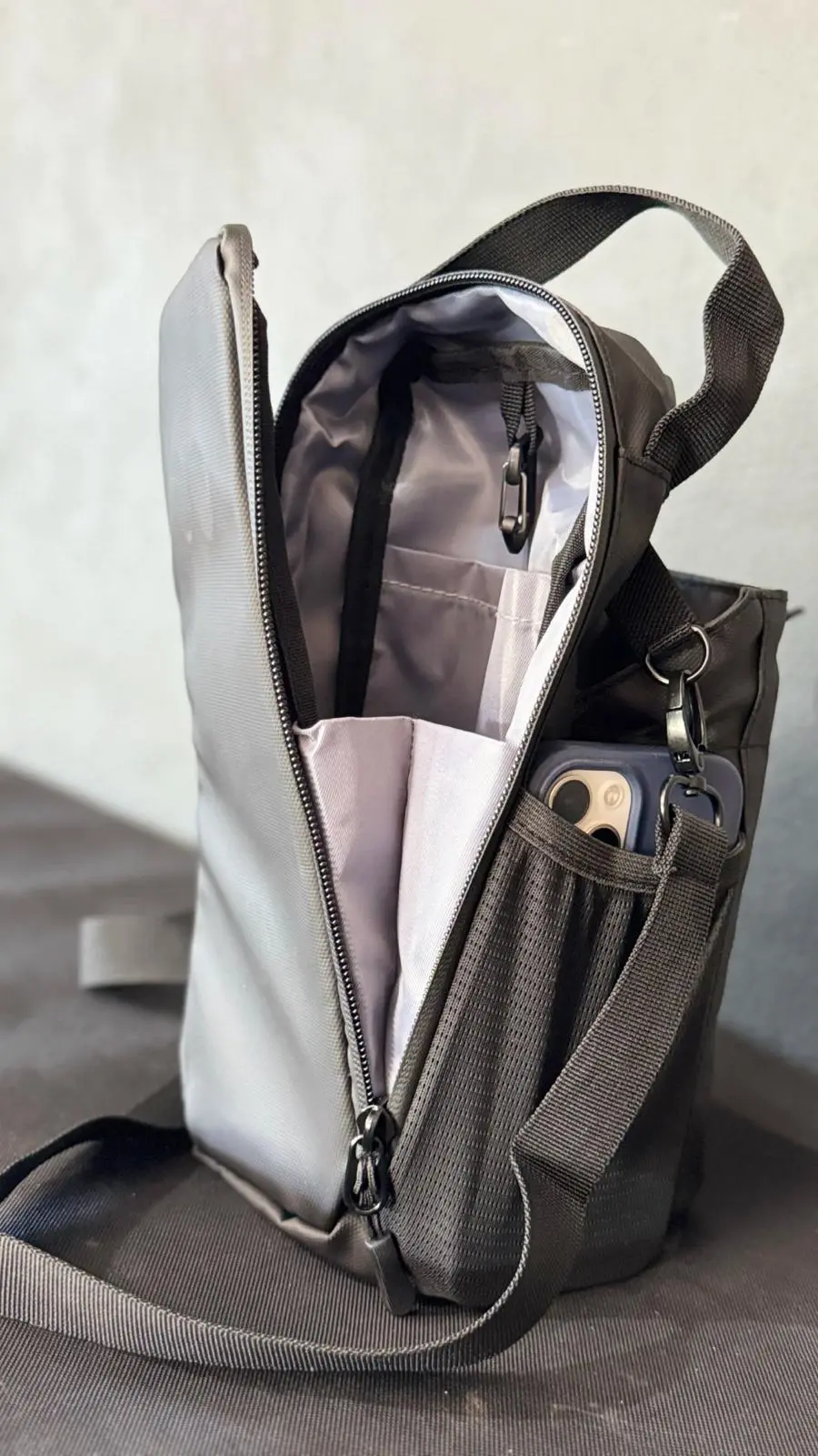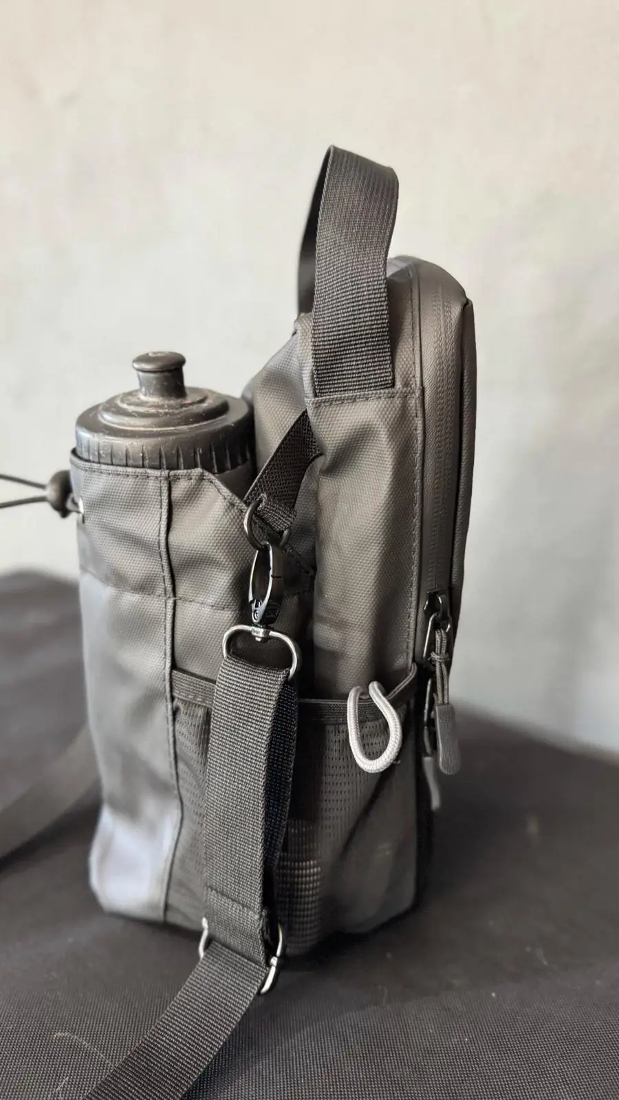 Su diseño inteligente incluye correa regulable, un mosquetón metálico para colgar la toalla o accesorios, y compartimentos pensados para mantener todo tu equipo organizado sin perder el estilo.